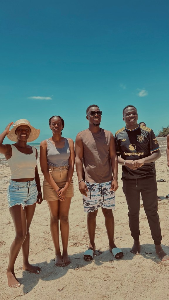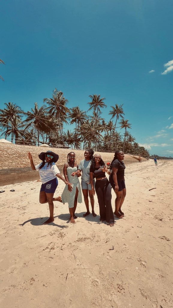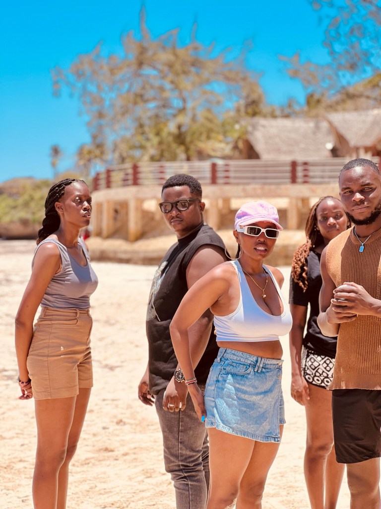 The beach, as expected, became a central character in their story. One expansive shot captures the vastness of the shoreline under a brilliant blue sky, dotted with distant figures, symbolizing the freedom and open possibilities that the ocean offers. Later, the group congregates, barefoot in the soft sand, their smiles radiant. From playful poses with palm trees swaying overhead to quiet moments of observation, these images radiate pure, unadulterated happiness.