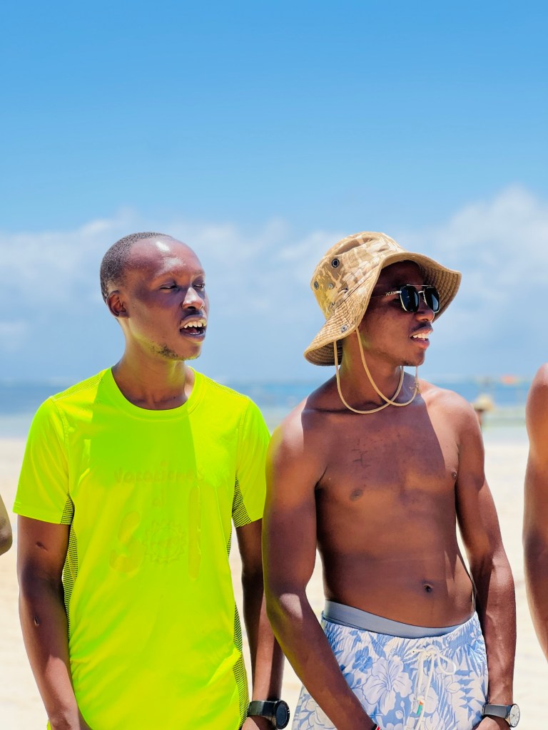 Even away from the immediate allure of the beach, the camaraderie continued. One image showcases a group of three men, confidently posing, their styles reflecting individual personalities yet harmonizing within the group. Another grand shot presents a larger gathering outside a charming building, perhaps their accommodation, indicating a celebratory or concluding group photo, full of proud faces and shared success.